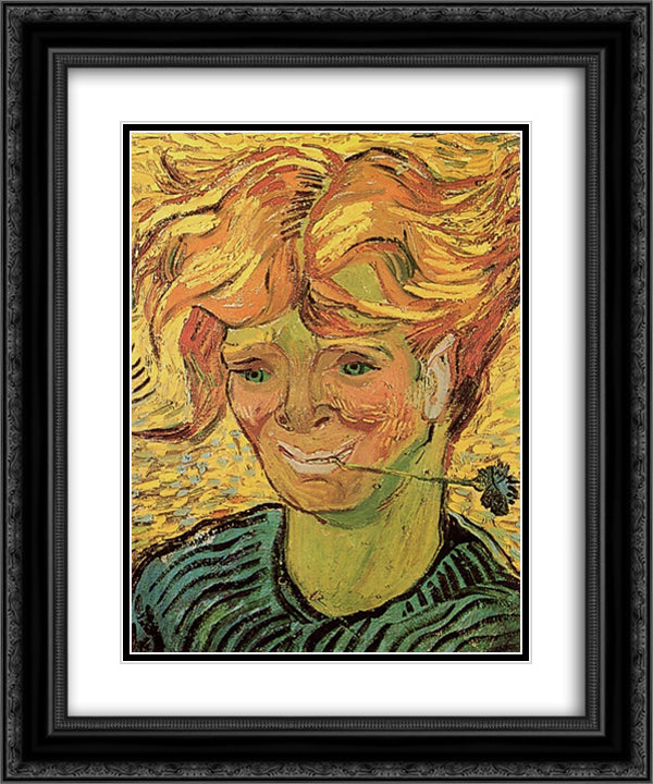 Young Man with Cornflower 20x24 Black Ornate Wood Framed Art Print Poster with Double Matting by Van Gogh, Vincent
