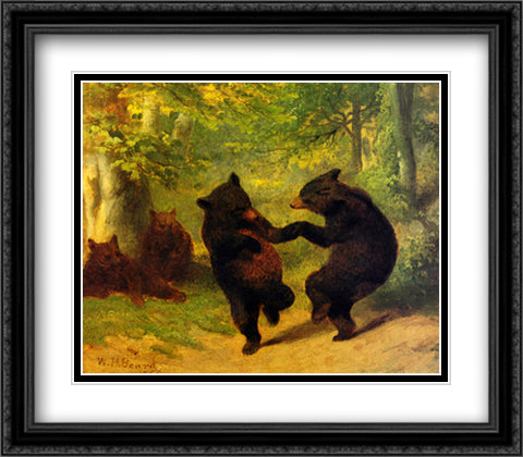 Dancing Bears 32x28 Black Ornate Wood Framed Art Print Poster with Double Matting by Beard, William