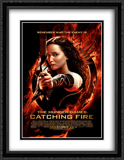 The Hunger Games Catching Fire 28x36 Black Ornate Wood Framed Movie Poster with Double Matting