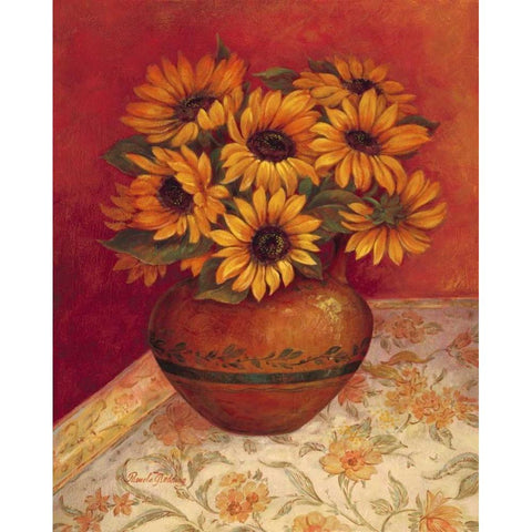 Tuscan Sunflowers I Black Modern Wood Framed Art Print with Double Matting by Gladding, Pamela