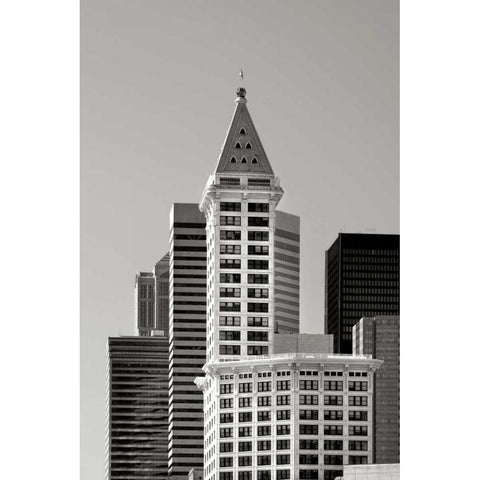 Smith Tower BW Black Modern Wood Framed Art Print with Double Matting by Taylor, Douglas