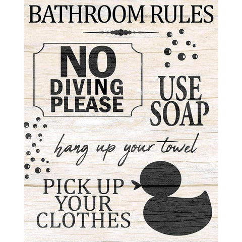 Bath Rules 1 Black Modern Wood Framed Art Print with Double Matting by Allen, Kimberly