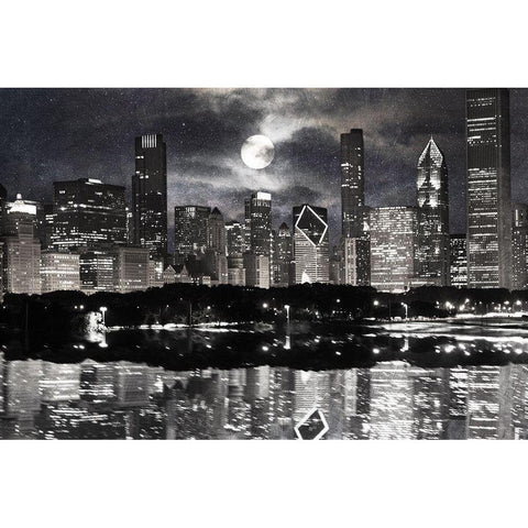 Full Moon Chicago 2 Black Modern Wood Framed Art Print with Double Matting by Prime, Marcus