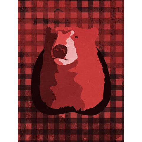 Bear Red Check Black Modern Wood Framed Art Print with Double Matting by OnRei