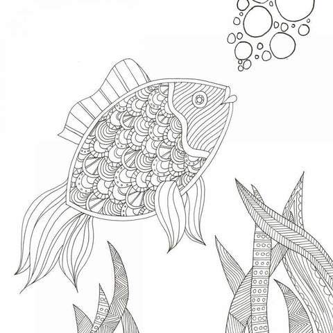 Fish Bubbles Black Modern Wood Framed Art Print with Double Matting by Varacek, Pam