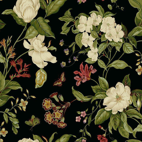 Garden Floral on Black II Black Modern Wood Framed Art Print with Double Matting by Unknown