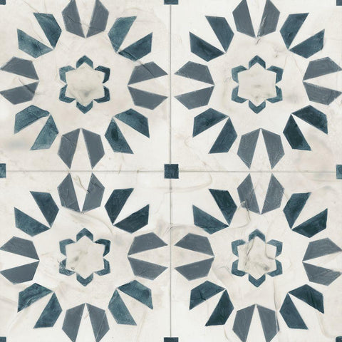 Teal Tile Collection III Black Modern Wood Framed Art Print with Double Matting by Vess, June Erica