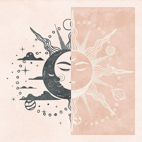 Sun and Moon Black Modern Wood Framed Art Print with Double Matting by Blue, Nina