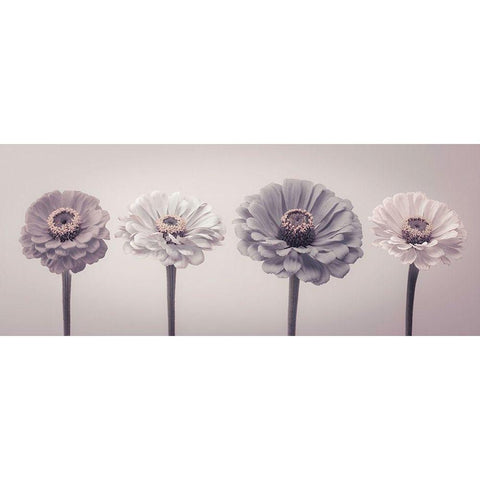 Four Zinnias in a row Black Modern Wood Framed Art Print with Double Matting by Frank, Assaf