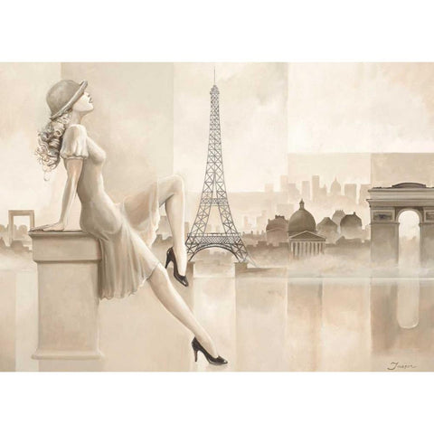 Paris girl Black Modern Wood Framed Art Print with Double Matting by Jasper