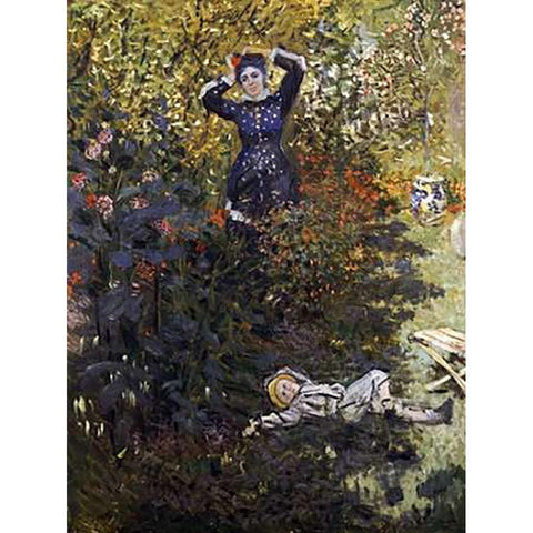 Camille and Jean in the Garden at Argenteuil Black Modern Wood Framed Art Print with Double Matting by Monet, Claude