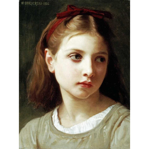 Une Petite Fille Black Modern Wood Framed Art Print with Double Matting by Bouguereau, William-Adolphe