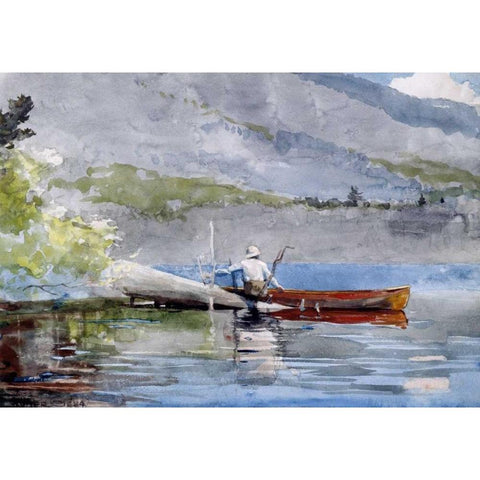 The Red Canoe Black Modern Wood Framed Art Print with Double Matting by Homer, Winslow