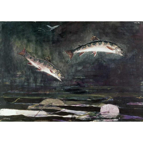 Leaping Trout Black Modern Wood Framed Art Print with Double Matting by Homer, Winslow