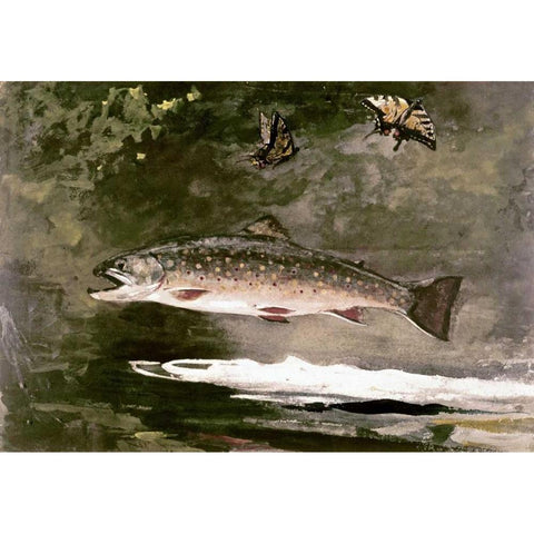 Trout Black Modern Wood Framed Art Print with Double Matting by Homer, Winslow