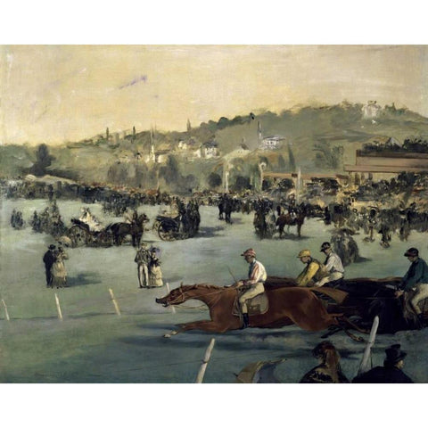 Horse Track Black Modern Wood Framed Art Print with Double Matting by Manet, Edouard