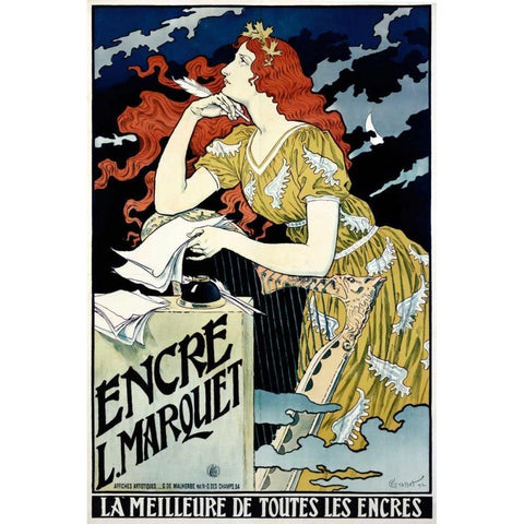 Encre L Marquet Black Modern Wood Framed Art Print with Double Matting by Grasset, Eugene