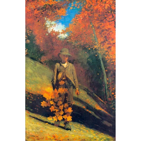 Gathering Autumn Leaves Black Modern Wood Framed Art Print with Double Matting by Homer, Winslow