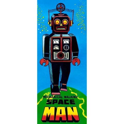 Mechanical Walking Space Man Black Modern Wood Framed Art Print with Double Matting by Retrobot