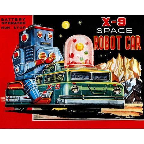 X-9 Space Robot Car Black Modern Wood Framed Art Print with Double Matting by Retrobot