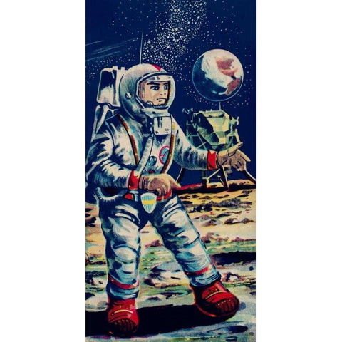 Moon Astronaut Black Modern Wood Framed Art Print with Double Matting by Retrobot