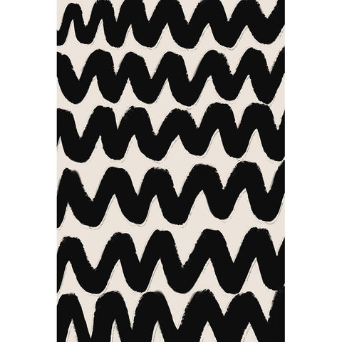 Thick Waves Pattern Black Modern Wood Framed Art Print with Double Matting by Treechild
