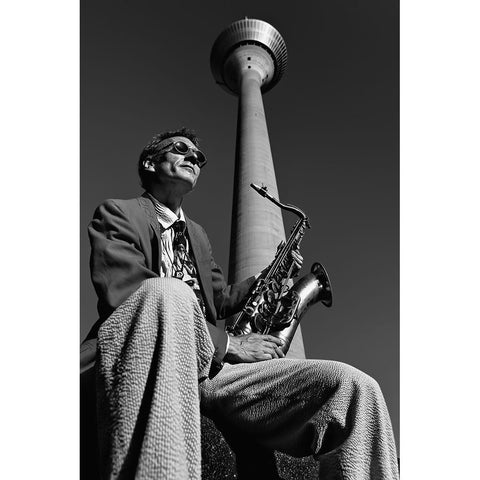 Frank M.-Saxophonist Black Modern Wood Framed Art Print with Double Matting by Ratzer, Klaus