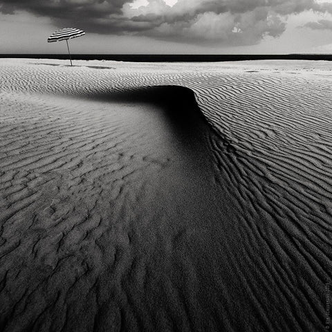 Umbrella On The Beach............... Black Modern Wood Framed Art Print with Double Matting by Schuurmans, Wim