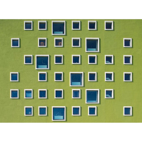 39 Windows Black Modern Wood Framed Art Print with Double Matting by Lykke, Jan