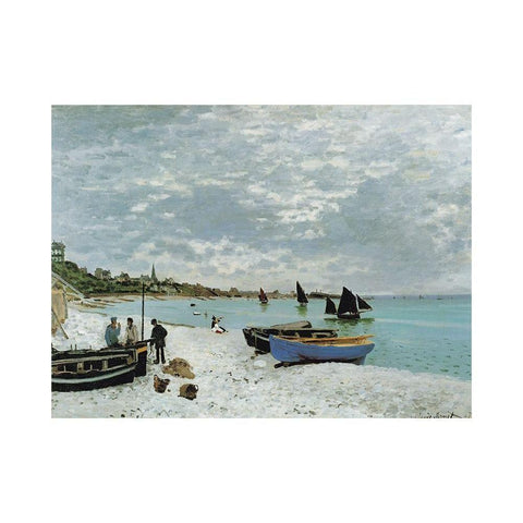 La plage a Sainte-Adresse Black Modern Wood Framed Art Print with Double Matting by Monet, Claude