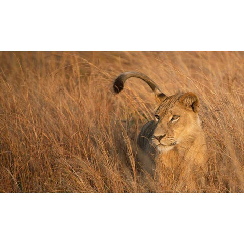 Lion in Tall Grass Black Modern Wood Framed Art Print with Double Matting by Bennion, Scott