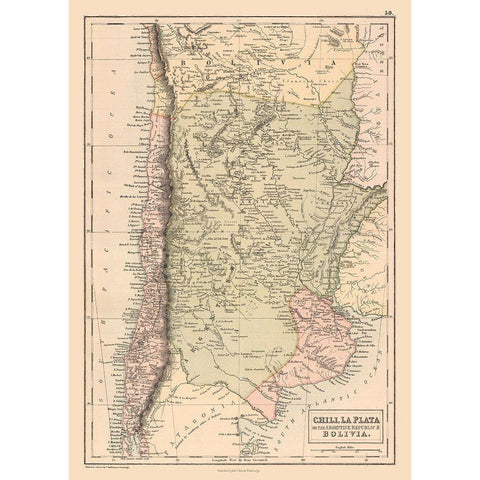 South America Argentina Bolivia Chile - Black 1867 Black Modern Wood Framed Art Print with Double Matting by Black