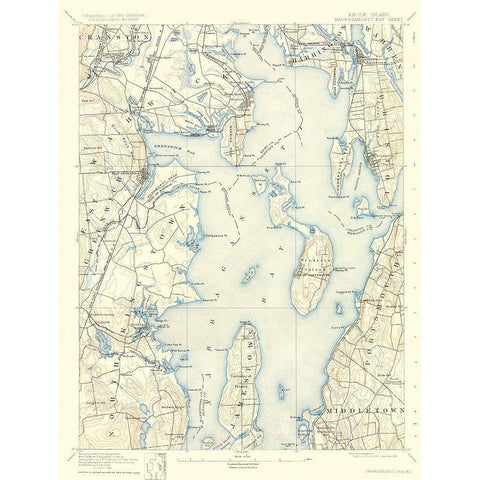 Narragansett Rhode Island Sheet - USGS 1892 Black Modern Wood Framed Art Print with Double Matting by USGS