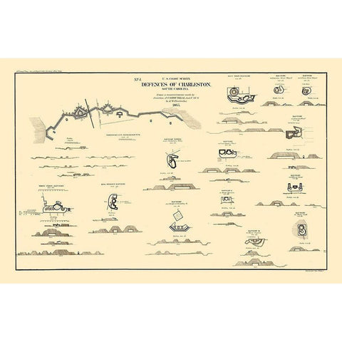 Charleston Coastal Defences - Willenbucher 1865 Black Modern Wood Framed Art Print with Double Matting by Willenbucher