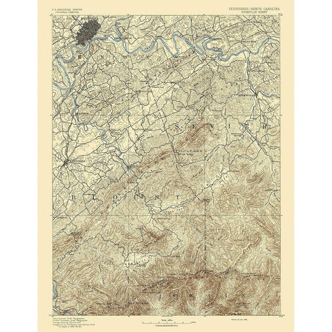 Knoxville Tennessee North Carolina Sheet Black Modern Wood Framed Art Print with Double Matting by USGS