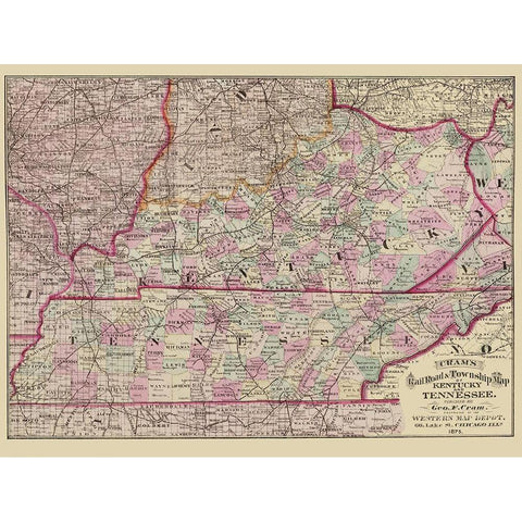 Kentucky and Tennessee Railroads and Townships Black Modern Wood Framed Art Print with Double Matting by Cram
