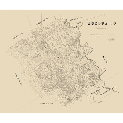 Bosque County Texas - Walsh 1879 Black Modern Wood Framed Art Print with Double Matting by Walsh