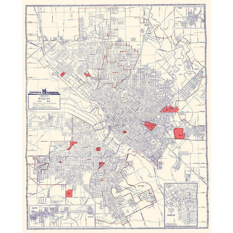 Dallas Texas - Ashburn 1947 Black Modern Wood Framed Art Print with Double Matting by Ashburn