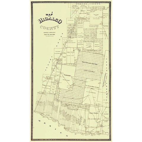 Hidalgo Texas - Land Office 1896 Black Modern Wood Framed Art Print with Double Matting by Land Office