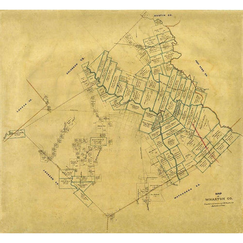 Wharton County Texas - Pressler 1865 Black Modern Wood Framed Art Print with Double Matting by Pressler