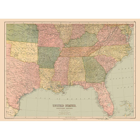 Southern Section of US - Black 1867 Black Modern Wood Framed Art Print with Double Matting by Black