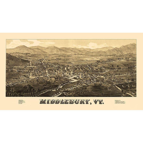 Middlebury Vermont - Burleigh 1886 Black Modern Wood Framed Art Print with Double Matting by Burleigh