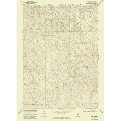 Bear Draw Wyoming Quad - USGS 1972 Black Modern Wood Framed Art Print with Double Matting by USGS