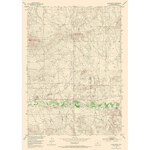 Gates Butte Wyoming Quad - USGS 1952 Black Modern Wood Framed Art Print with Double Matting by USGS