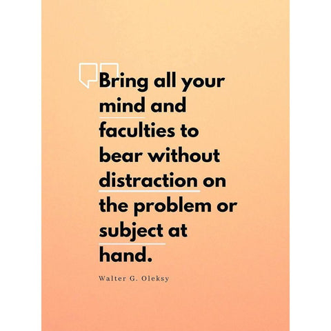 Walter G. Oleksy Quote: Without Distraction Black Modern Wood Framed Art Print with Double Matting by ArtsyQuotes