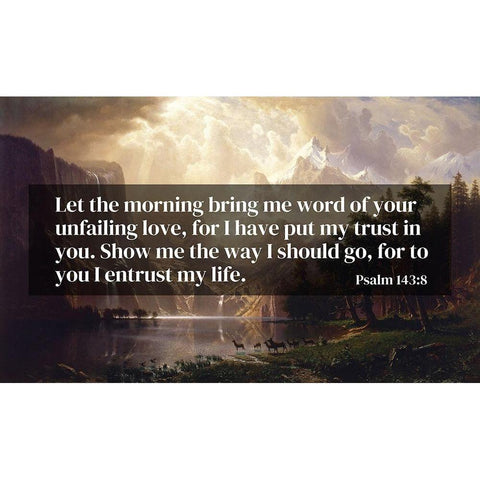 Bible Verse Quote Psalm 143:8, Albert Bierstadt - Among the Sierra Nevada Mountains California 1868 Black Modern Wood Framed Art Print with Double Matting by ArtsyQuotes