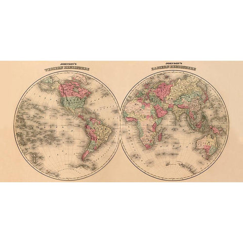 Johnsons World Map Black Modern Wood Framed Art Print with Double Matting by Johnson, A.J.