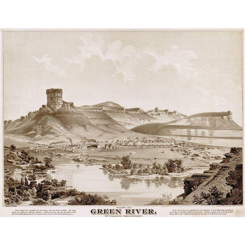 Green River-Wyoming 1875 Black Modern Wood Framed Art Print with Double Matting by Vintage Maps