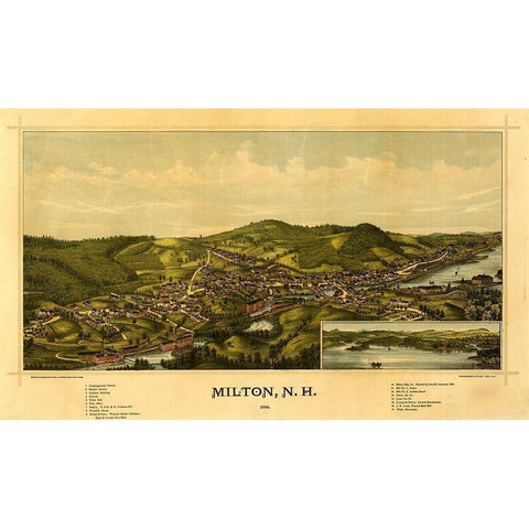 Milton-New Hampshire 1888 Black Modern Wood Framed Art Print with Double Matting by Vintage Maps