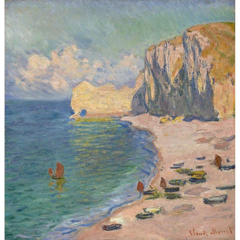 The Beach and the Falaise d Amont Black Modern Wood Framed Art Print with Double Matting by Monet, Claude